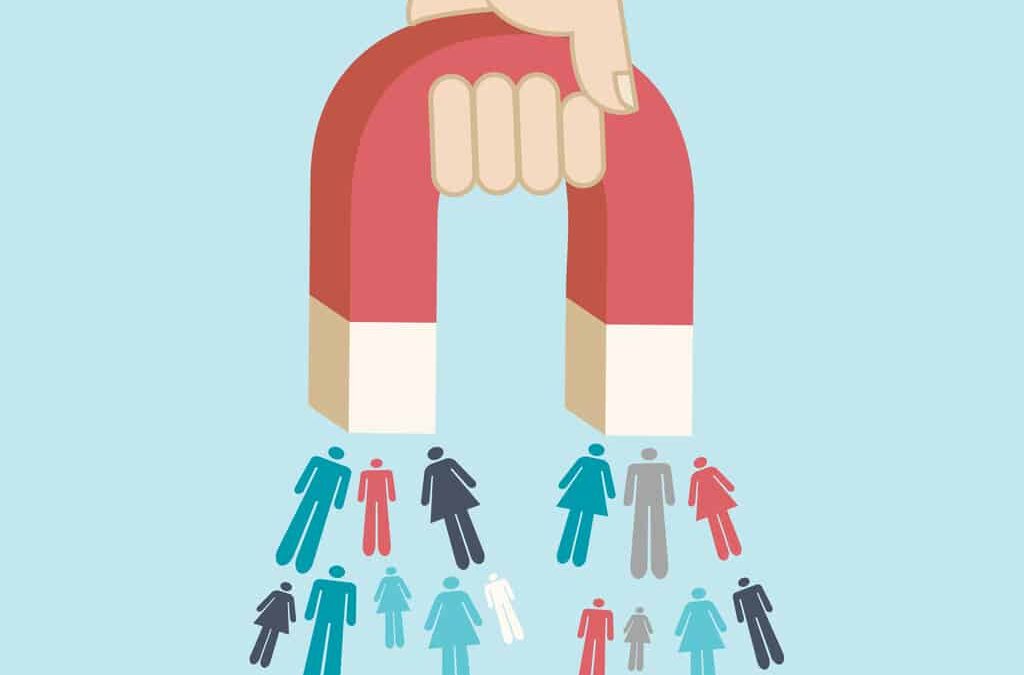 Magnet pulling people for inbound lead generation for digital marketing symbol